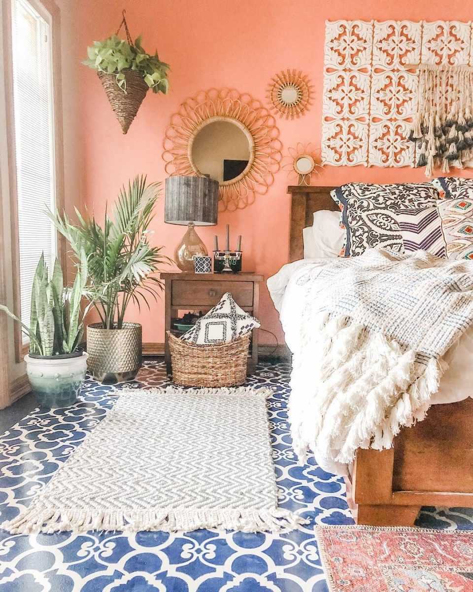Деревянная или кованая кровать светло-розового цвета добавит в интерьер нотку романтики и нежности. Хороший вариант для спальни в классическом, шебби-шик и прованс стиле. Яркий тон будет эффектно смотреться на бархатной или кожаной обивке с добавлением декоративных элементов.