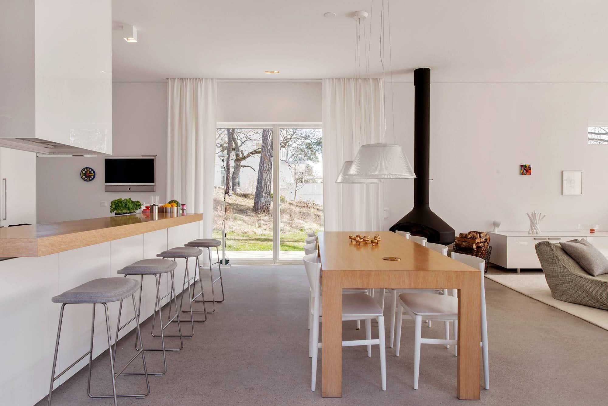 Для небольшой и узкой кухни желательно выбирать белые занавески