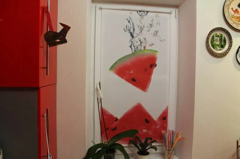 Арбуз на рулонной шторе ‒ актуальный рисунок для кухниИсточник kraevid.in.ua