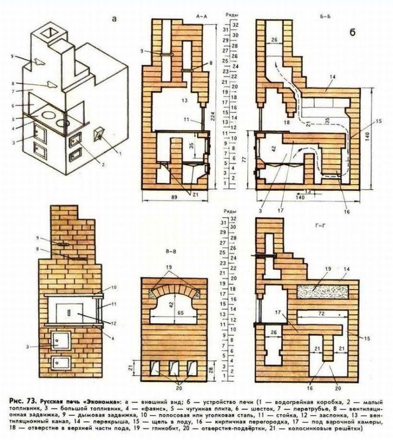 Кладка кирпича русской печи – 10 проектов + порядовки