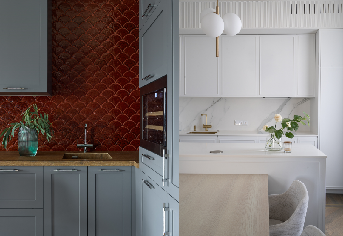 Времена, когда стык между кухонным фартуком и столешницей прикрывали пластиковым плинтусом или алюминиевым молдингом, уходят в прошлое. Что современный кухонный дизайн предлагает взамен устаревших решений? Рассказываем.