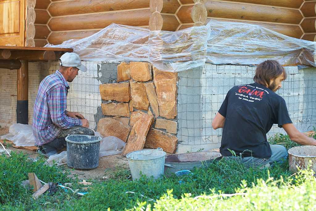 Натуральный камень – достаточно дорогой материал, однако срок его эксплуатации неограничен, к тому же он отлично сочетается с деревянными стенами. Что касается прочих его эксплуатационных качеств, то камень способен надежно защитить основание от негативного атмосферного воздействия.