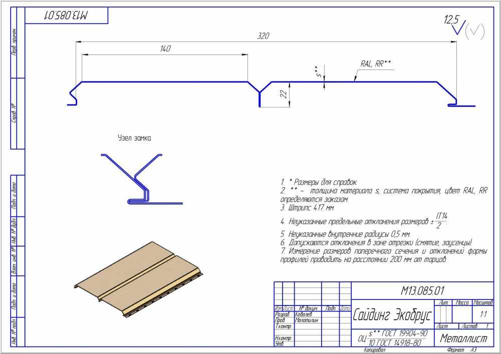 Металлический сайдинг под брус имеет следующие технические характеристики: