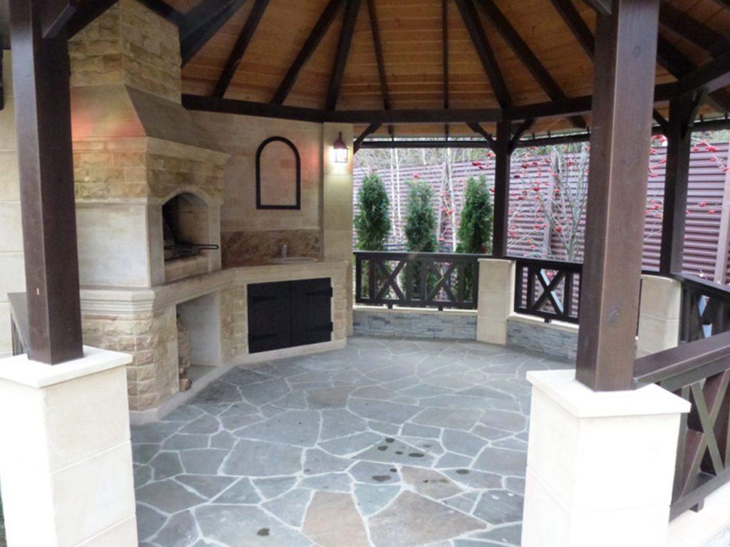 При этом, при всей эстетической оригинальности природного камня, строительный и облицовочный кирпич несомненно является более практичным и позволяет применить большее разнообразие архитектурных и дизайнерских форм. Кирпич можно применить также и для устройства пола беседки. Каменный пол тоже может иметь место, но при этом булыжники должны быть должным образом обработаны.