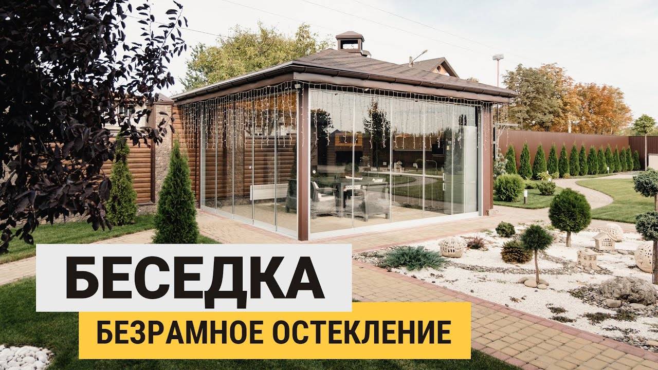 ОБЗОР объекта. Беседка загородного дома. Безрамное остекление. Система Sliding Slim.