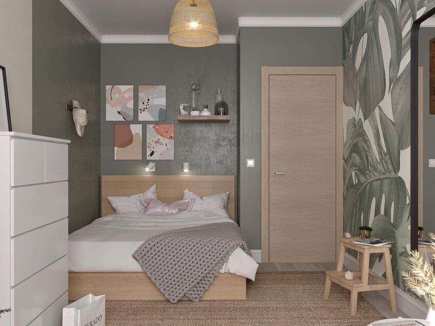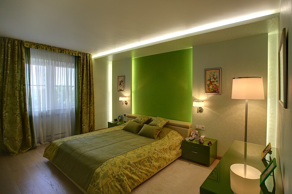 Если в зале зеленые тона должны оживлять обстановку, то в комнатах, предназначенных для сна – должны настраивать на отдых. Поэтому здесь лучше использовать светлые и приглушенные оттенки: вам подойдут зеленые обои цвета мышьяк, оливковые, фисташковые и другие спокойные тона.