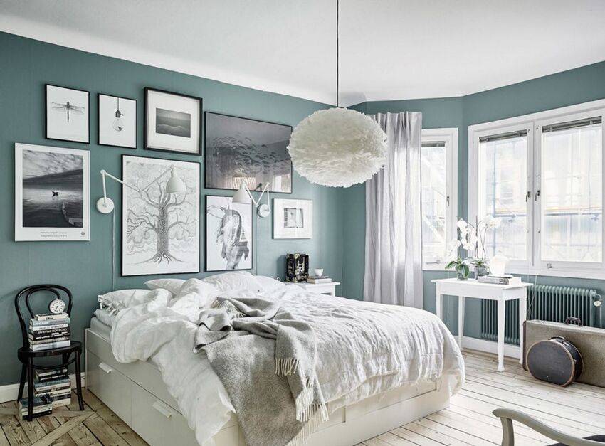 Чудесные цвета спокойного моря или безоблачного неба успокаивающе влияют на человека. Их можно сочетать с серебристыми тонами, с различными оттенками бежевого и серого цветов. Для спальни хороши голубые и лазурные цвета.