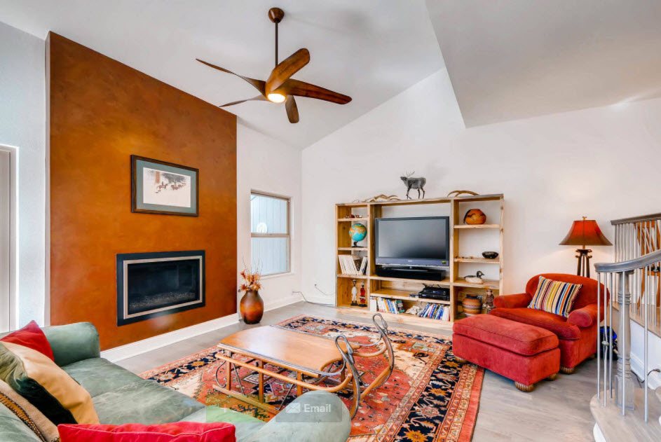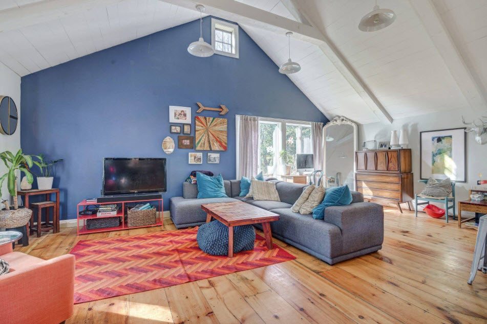 - Покраска одной из стен в другой цвет сделает интерьер гостиной стильной и необычной