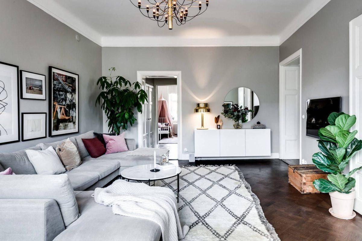Бело серая гостиная – также хороший вариант, если комната маленькая. Комбинация серого с пастельными тонами (кремовым, бежевым) уместна как в классических, так и в некоторых современных интерьерах (например, скандинавском) и хорошо подойдёт для небольшой гостиной.