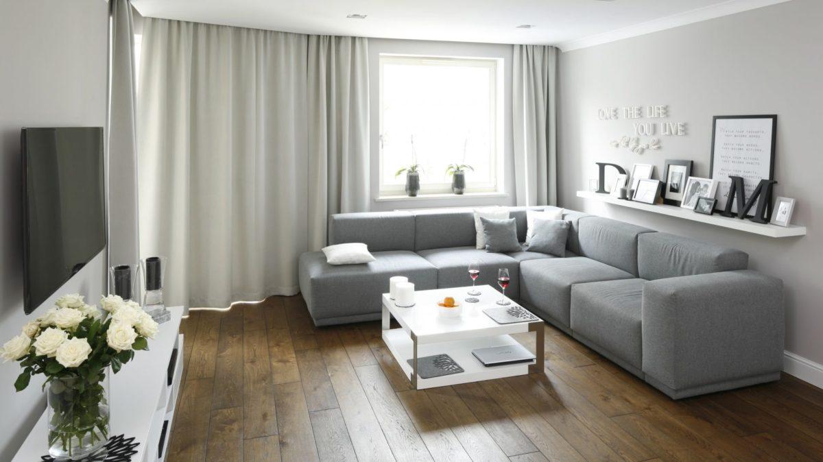 При планировании серого интерьера гостиной следует учитывать влияние оттенков на восприятие геометрии помещения. Правильным выбором отделки можно скрыть недостатки помещения, за счёт чего оно будет восприниматься гармоничнее.