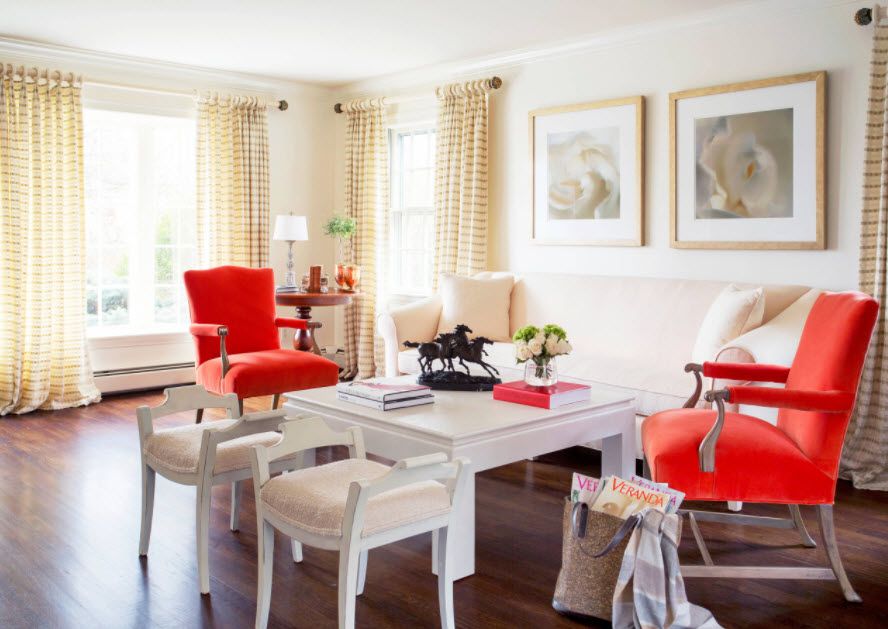 Каждый из этих цветов по-своему хорош и привносит в комнату что-то свое. Но стоит помнить, что с такими самобытными цветами будет сложно создать комбинацию. Проще всего, выбирая основной цвет среди ярких оттенков, подбирать остальные части интерьера базового цвета. Такое сочетание будет смотреться оригинально и изысканно. Кроме того, не всякий стиль позволит использовать пестрые переливы оранжево-красной палитры.