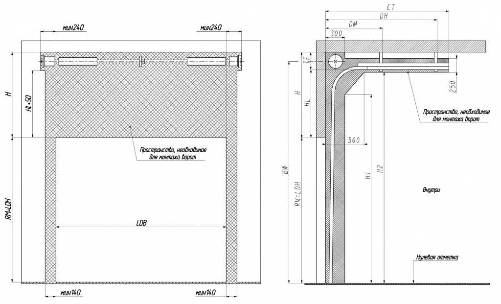 Еще раз обращаем ваше внимание: на последний параметр стоит обратить внимание — глубина помещения, в который устанавливаются секционные ворота, не может быть меньше этой величины