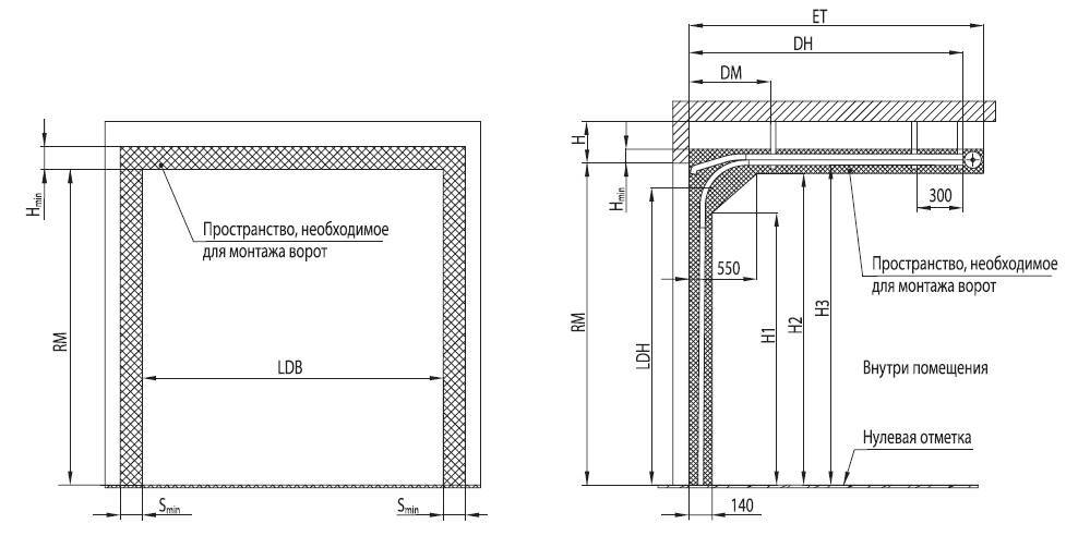 Пространство внутри помещения должно быть достаточно для монтажа системы направляющих и привода, если используется автоматизированная модификация