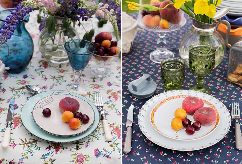 Хотите быстро задать настроение всей сервировке? Выберите интересную яркую скатерть! Например – с цветочным, растительным или ягодным рисунком.