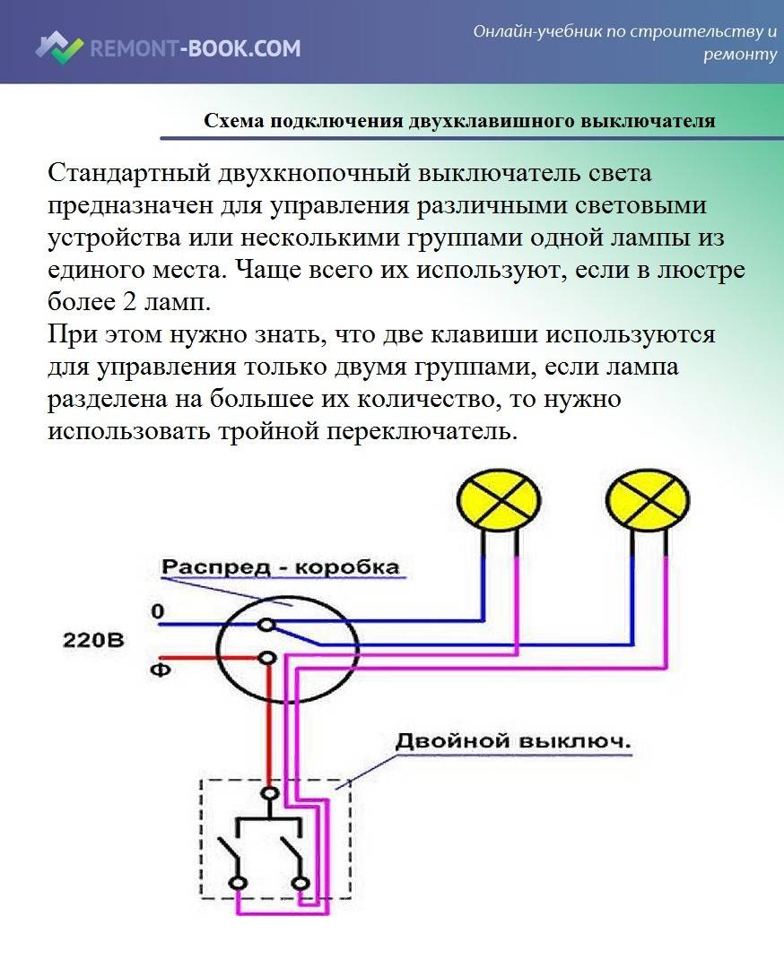 Как подключить двойной выключатель на две лампочки – схема подключения