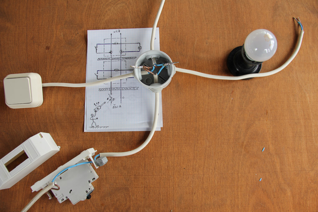 Коммутационные коробки, собирающие соединенные провода в одном месте и закрывающие их от внешних воздействий, в данном случае нужно брать побольше (диаметров от ста миллиметров) или в большем количестве (несколько стандартных коробочек, имеющих диаметр 60 мм).