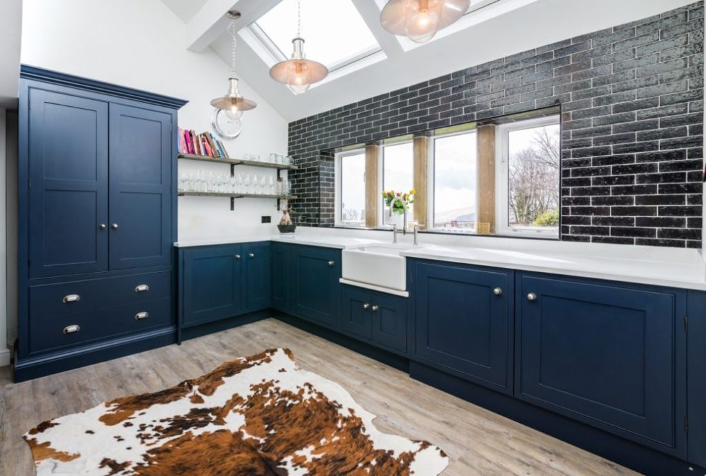 Многие люди выбирают белый потолок, что совершенно нормально. Однако представьте, что дизайн пошел тем же путем – это привело бы к тому, что белые шкафы и приборы терялись в нейтральной цветовой палитре. Выбирайте более глубокие оттенки, такие как темно-синий или темно-винтажный для классического дизайна. Грубые деревянные потолочные балки идеально подходят для потолка в данном стиле.