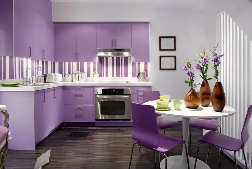 Сочетание сиреневого цвета в интерьере кухни (70 фото)