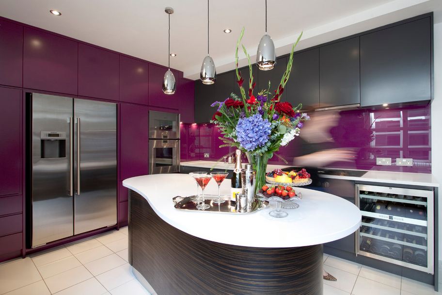 Фиолетовый цвет в интерьере современной кухни выглядит эффектно и свежо