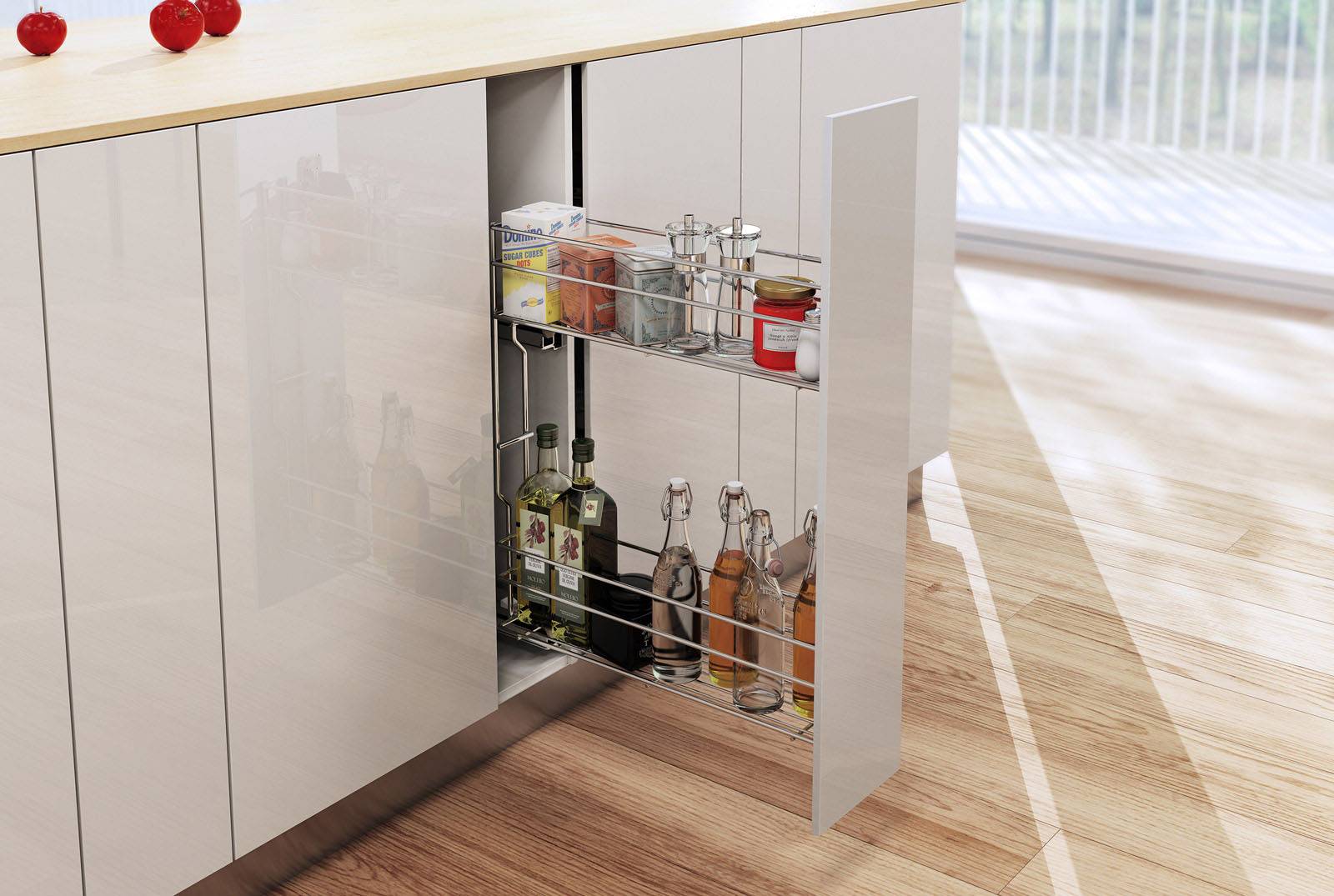 много места. Пусть они тоже работают! Узкие выдвижные шкафчики для хранения
