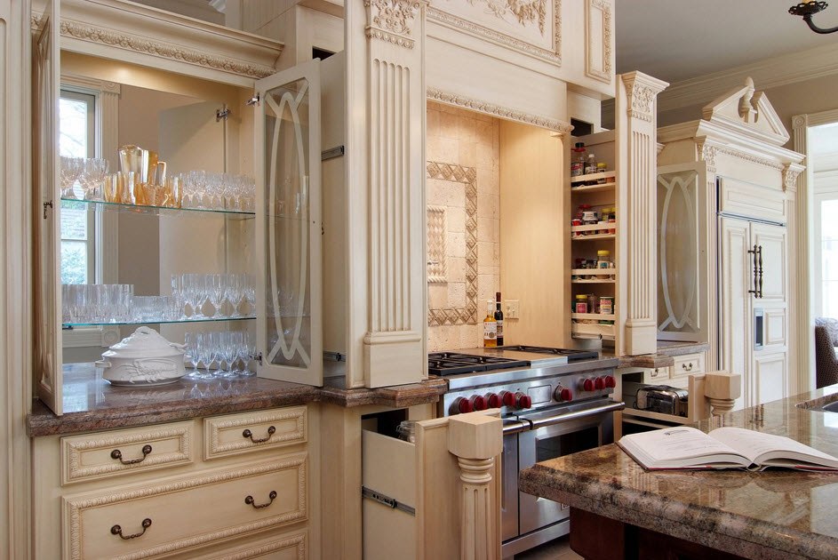 Увы, величавые колонны и дверные проемы в классических кухнях занимают