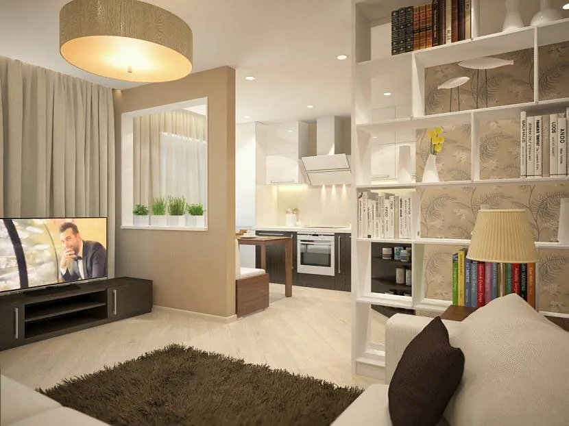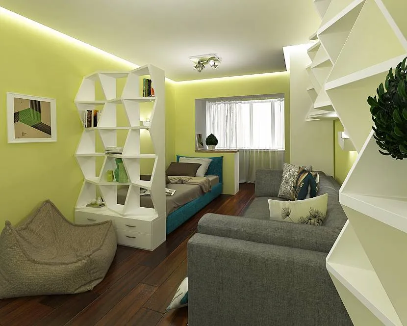 Помещение должно быть разделено на зоны, но при этом иметь общий стиль и цветовую гамму. Маленькую по площади комнатку лучше не загромождать мебелью. Для таких случаев отлично подходит мебель-трансформер. Оригинально смотрятся конструкции, объединяющие разные зоны в одно компактное сооружение.