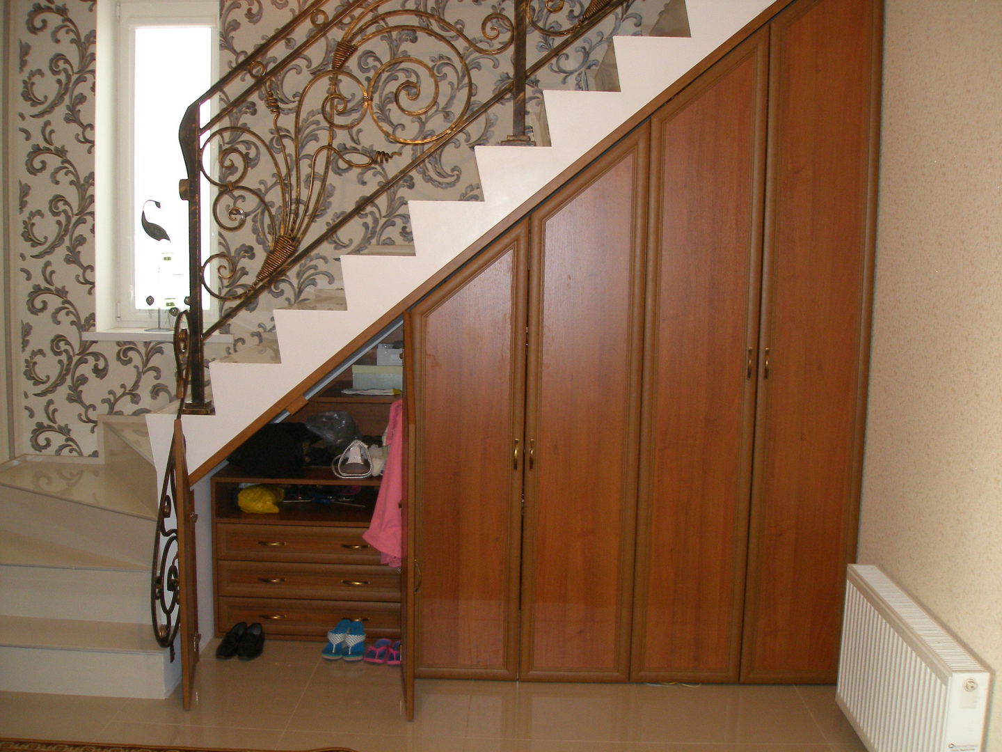 Виды встроенных в лестничный марш конструкций шкафов: 5 вариантов