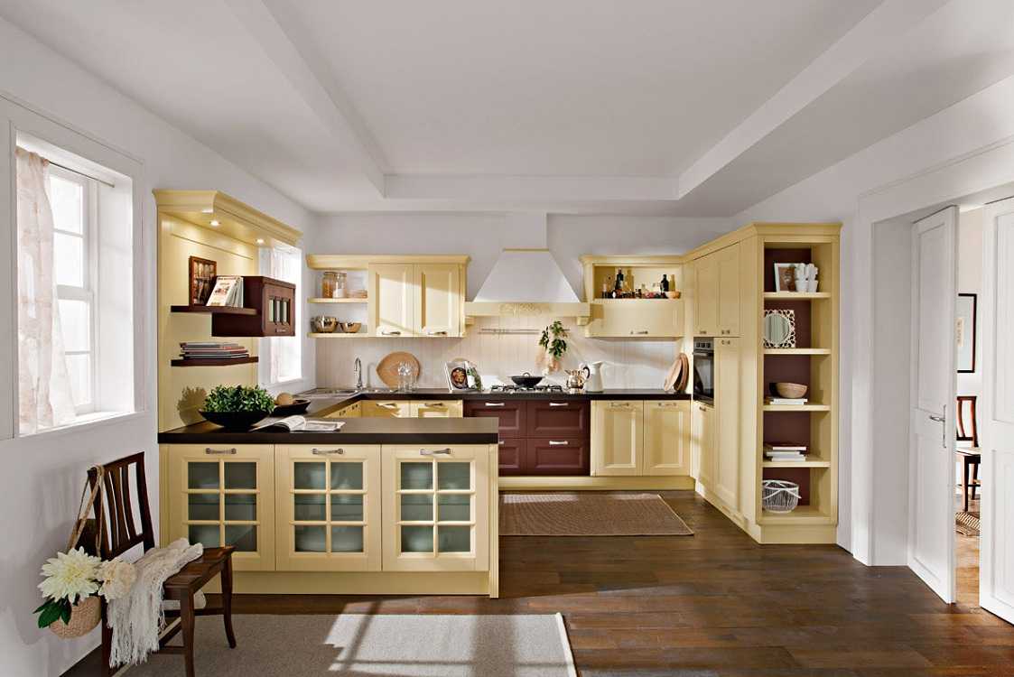 Также некоторые дверцы на кухне можно выполнить из стекла.