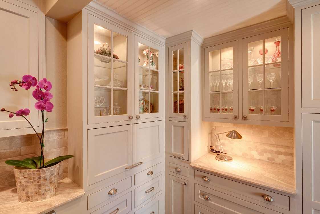 В такие шкафы можно поставить красивый сервиз, бокалы, вазу. Они будут на видном месте и помогут дополнить интерьер.