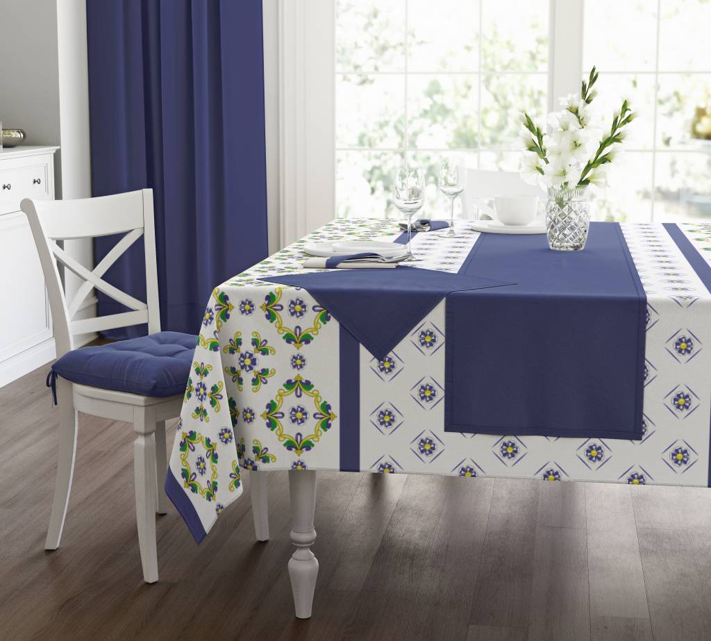 Это универсальный материал: тонкий или плотный, любой расцветки и узорчатости. За счет того, что хлопок — натуральный материал, он выглядит на столе благородно, спадая с края красивыми складками.