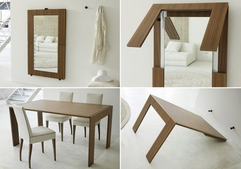 Складывающуюся мебель привычно видеть на даче и в походных условиях, но современный ассортимент включает модели и для городских квартир. Их особенность — в возможности трансформации. При необходимости изделия раскладывают, а за ненадобностью убирают, освобождая пространство.