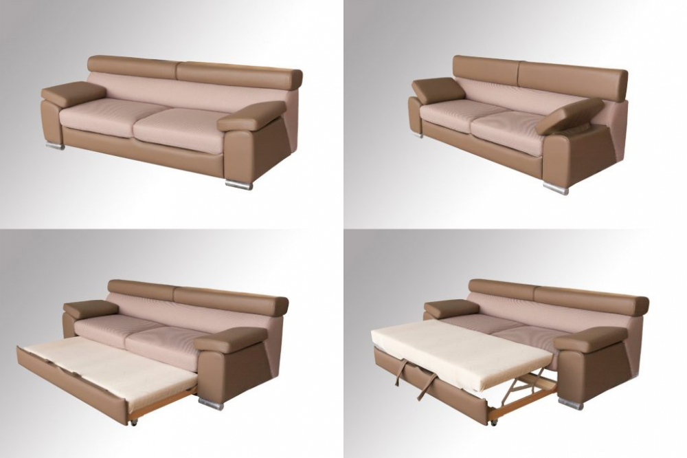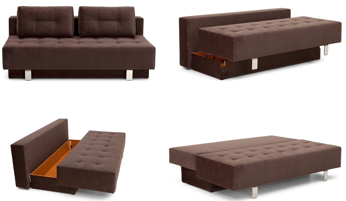 При выборе механизма нужно учитывать размеры помещения и цели использования мебели. В небольших пространствах оптимальным будет вариант «раскладушка» — за специальную ручку сиденье тянут на себя и разворачивают до установки на опоры.
