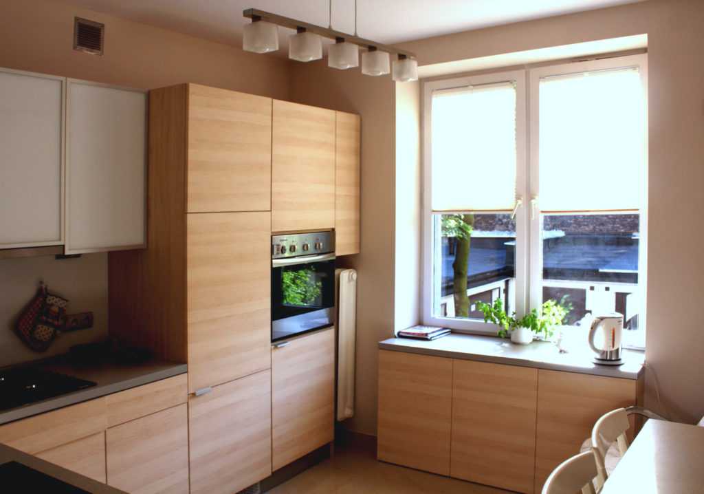 Стандартная кухня в типовом доме небольшая по площади, да и потолок у нее невысокий