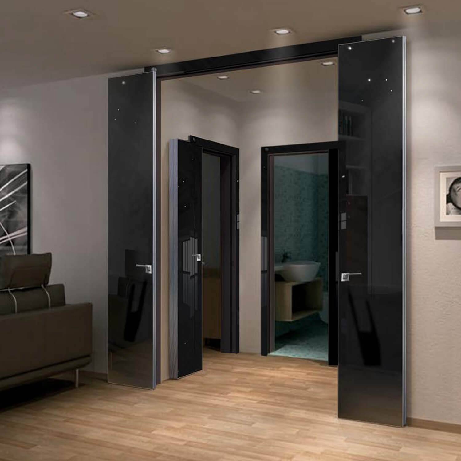 Межкомнатные раздвижные двери открываются в сторону, сдвигаясь по специальной направляющей. Несмотря на то, что они чрезвычайно стильные и прекрасно вписываются в комнату, оформленную в современном стиле, они требуют много места. Поэтому их лучше не устанавливать в узком коридоре или небольшой гостиной (если только она не достаточно широкая).