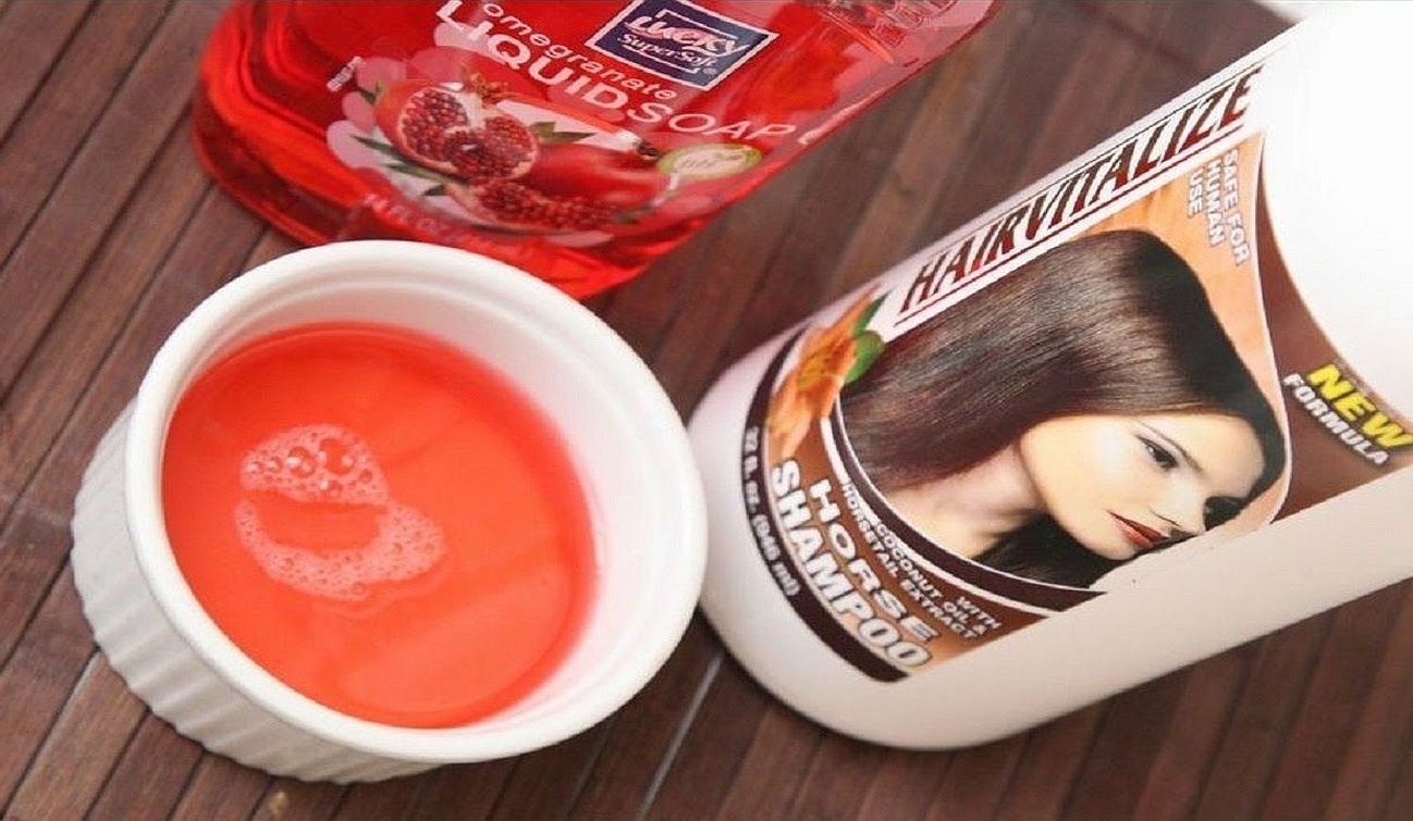 - Шампунь и жидкое мыло смешать в равной пропорции.