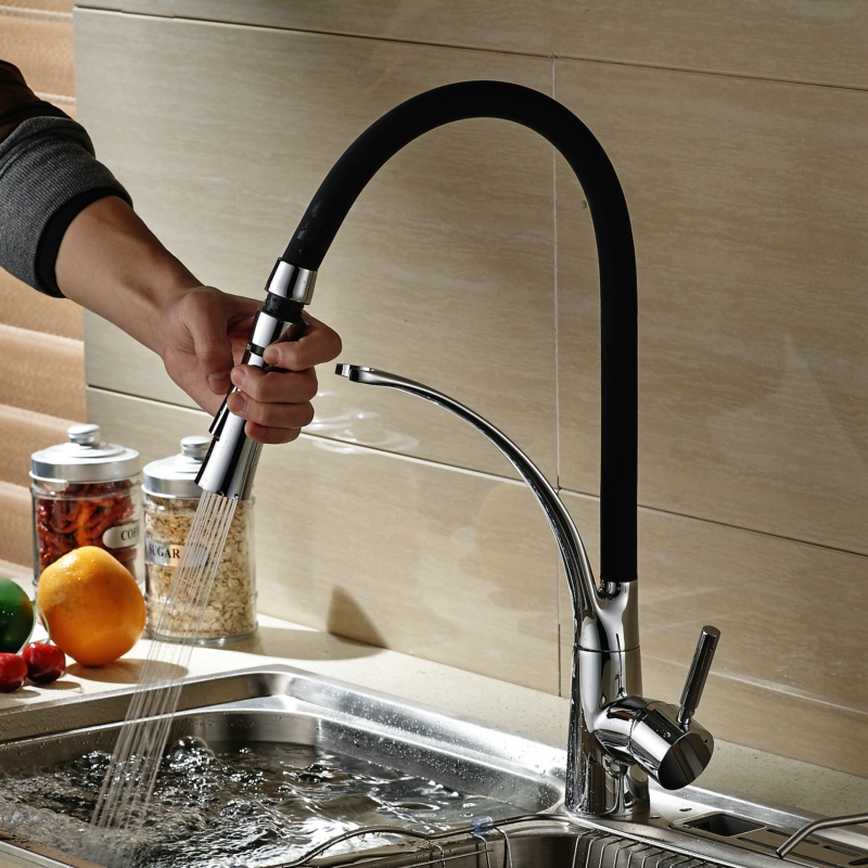 Гибкий излив для кухонного смесителя в первую очередь помогает достичь заветного комфорта на кухне. Мыть крупную посуду и мелкие детали гораздо удобнее, ведь есть возможность контролировать высоту и наклон шланга.