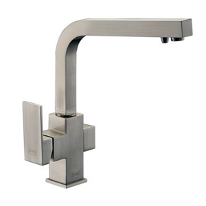 В таком типе крана для кухни механизм помещен внутрь неразборного литого корпуса. Напор и температура воды регулируется не вентилем, а рычагом. Такая конструкция укомплектована подвижным изливом, который регулирует направление струи.