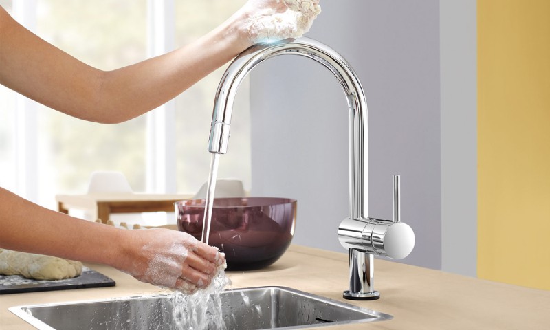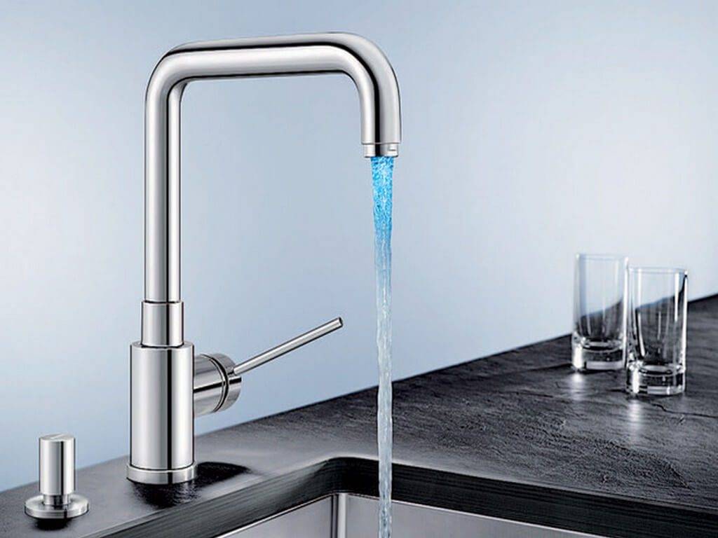 Обратите внимание на оригинальные изобретения промышленных дизайнеров: подсветка на кран (простая и светодиодная), счетчик воды и электронный термометр, встроенный в сопло крана. Очевидно, что эти инновации не только выглядят эстетично и украшают кухонный интерьер, но и несут функциональную нагрузку