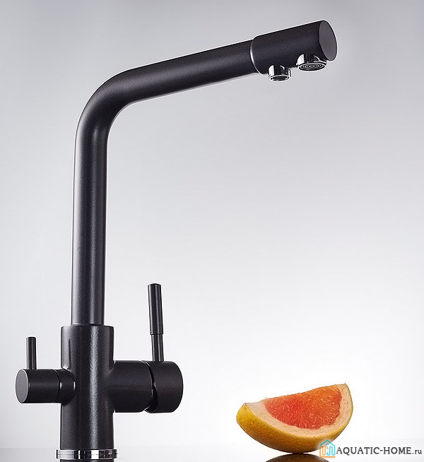 Есть приборы, оснащенные угольными фильтрами для питьевой воды. Такие устройства бывают либо с одним изливом, в котором водопроводная и отфильтрованная вода не перемешиваются, либо с двумя изливами: первый – питьевой, второй – «технический».