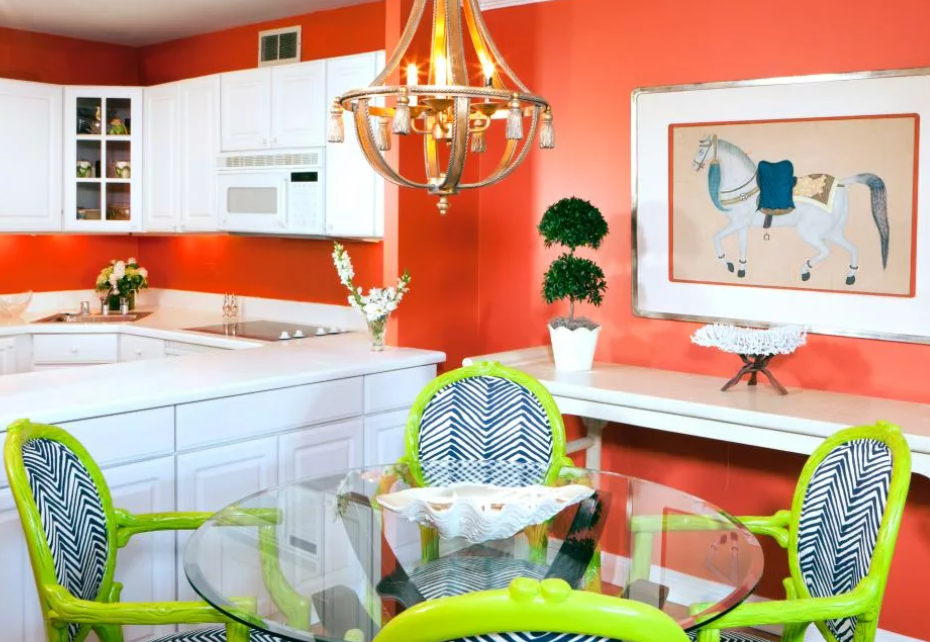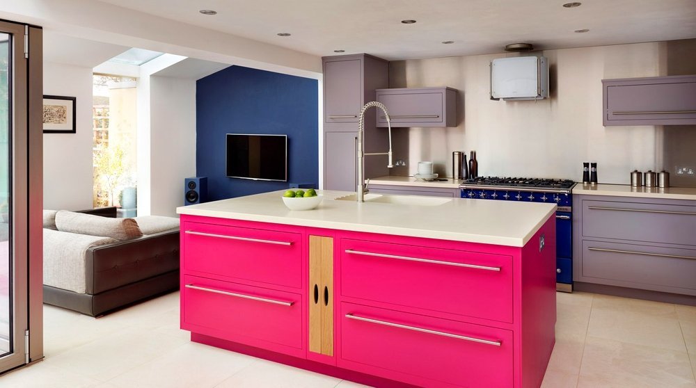 Правила применения ярких цветов кухни