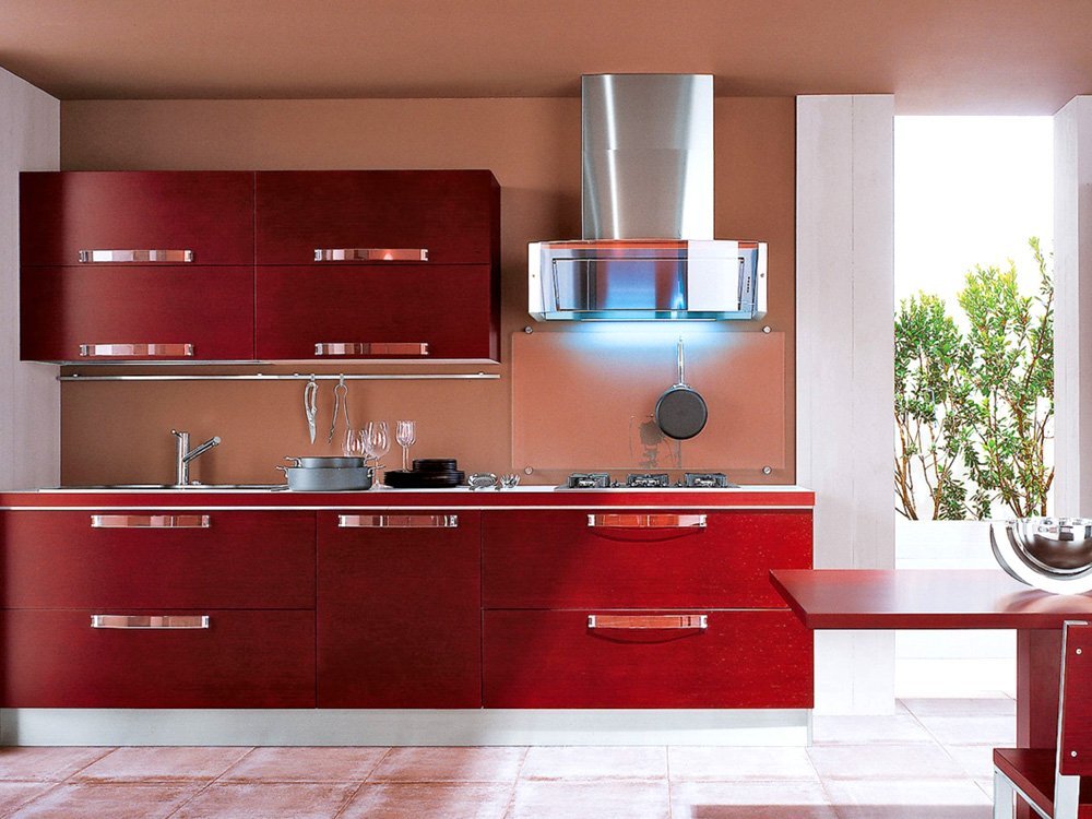 Красные и оранжевые цвета кухонь: примеры оформления