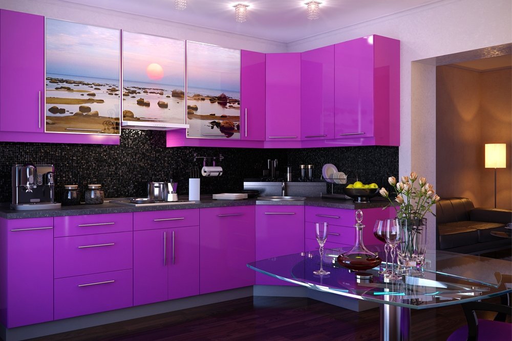 Кухни в фиолетовом цвете стоит дополнить: