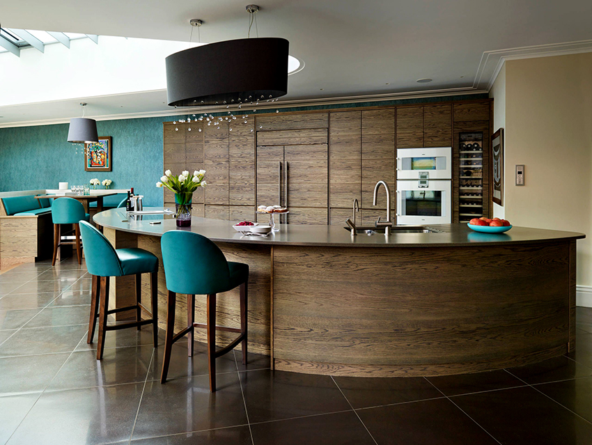 Если у вас фартук с каким-то орнаментом, например с восточным, то хорошо бы его продублировать либо в шторах, либо в плитке на полу, либо в люстре. Не стоит его везде «пихать», иначе выйдет непомерное разнообразие.