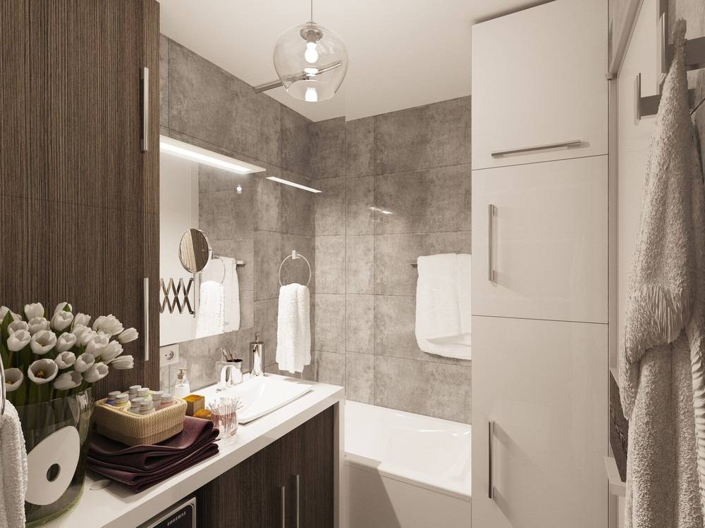 Как правило, в ванных комнатах с маленькой площадью меньше пространства, чем в просторных. Там не хватает места под разнообразную бытовую технику и мебель. Однако и для них есть варианты подходящей обстановки.
