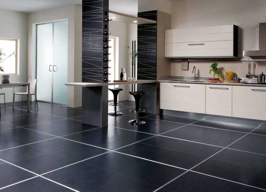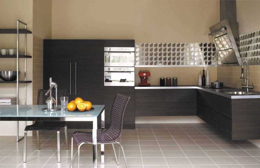 Кухонная плитка для пола ни в коем случае не должна скользить, выбирайте материалы и образцы с высоким коэффициентом трения – падать на кухне, наполненной опасными углами и острыми предметами явно идея не из лучших.