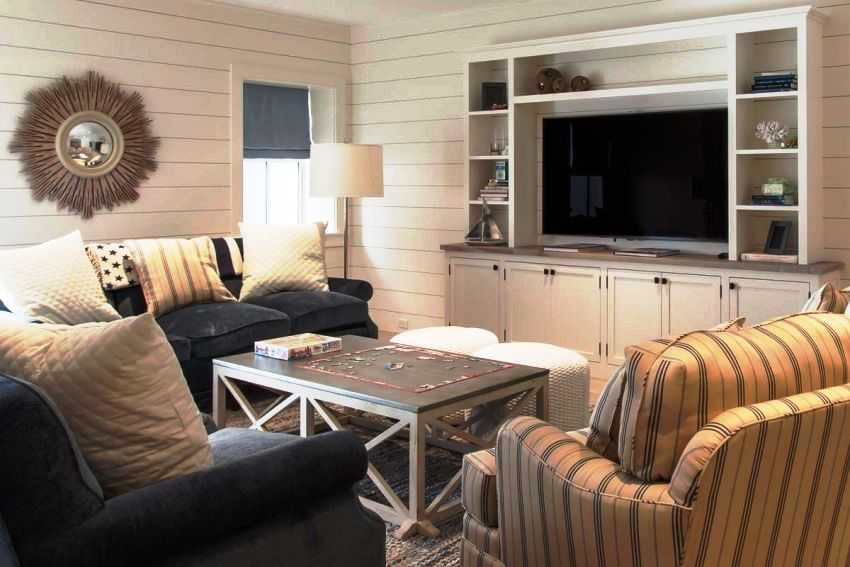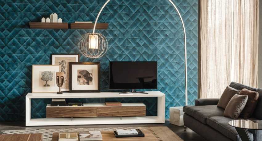 - Стильный дизайн в сочетании с тонкой панелью современных телевизоров свободно занимают центральное место в интерьере.