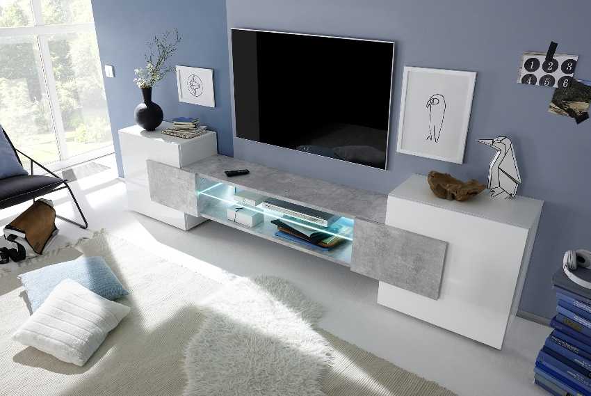 Итак, прежде всего определитесь, какую высоту должна иметь тумба под телевизор в современном стиле. Далее измерьте длину телевизора и пространство, которое вы можете отвести под установку этого типа мебели. Это поможет определиться с минимальными и максимальными размерами тумбы под телевизор. В магазине вам эти цифры пригодятся. Выставочные залы имеют большую площадь, из-за чего мебель кажется меньше, чем есть на самом деле. Ориентируясь на имеющиеся измерения вам будет сложнее промахнуться с выбором.