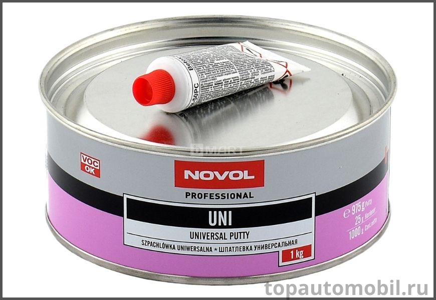 Так как моя практика – ремонт крафтовых автомобилей, я не использую очень дорогие материалы, в основном в магазинах РФ представлена продукция польской компании NOVOL, именно по шпатлевкам этого производителя я вам и расскажу виды полиэфирных шпатлевок и их применение.
