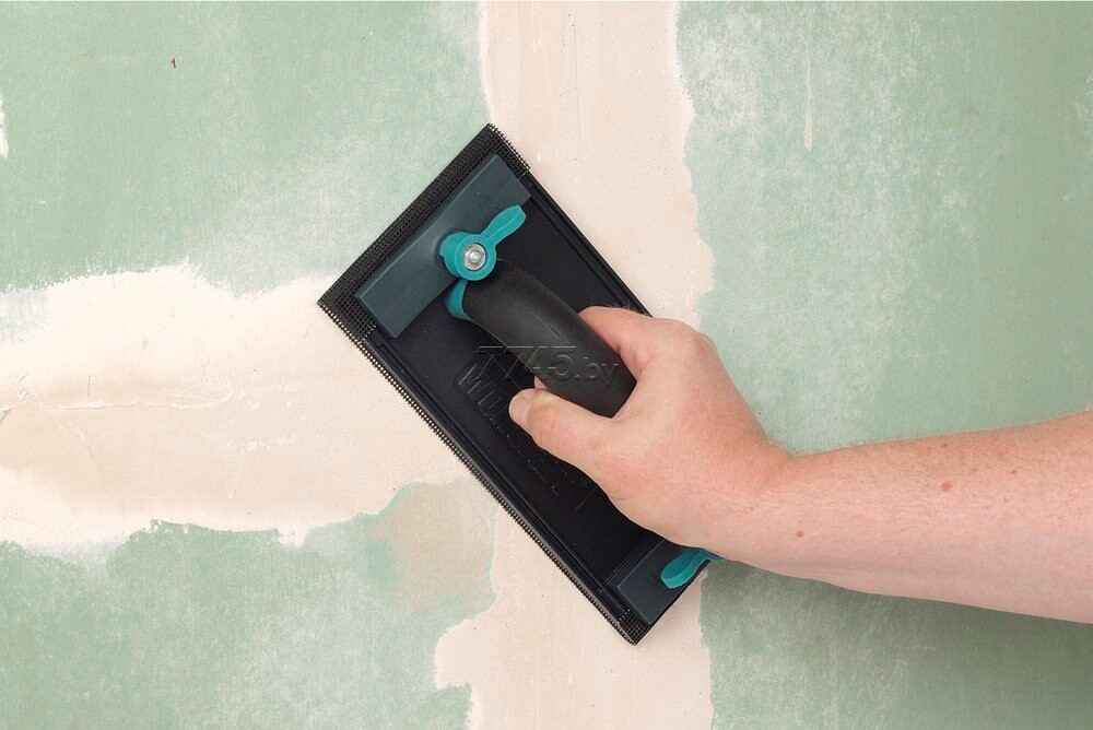 - Дождитесь, пока раствор высохнет, и отполируйте поверхность гипсокартона с помощью шлифовальной бумаги.
