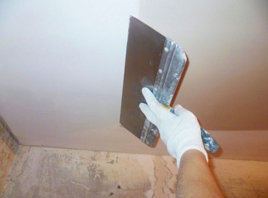 Теперь разберемся, как штукатурить гипсокартонный потолок.
